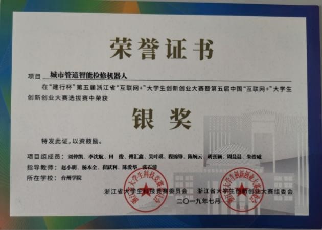 机器人创新平台开展管道机器人项目研究并在“建行杯”第五届浙江省“互联网+”大学生创新创业大赛中荣获银奖。机器人端搭载了一台200万高清摄像头,可以对管道内的污垢、腐蚀、穿孔、裂纹等状况进行全方位探测,可360度旋转,可根据亮暗调节灯光。主控制器搭载工业级X86主板,搭载WIN7系统,带128G硬盘,4G内存,有充足的视频存储空间,主控制器带键盘操控和摇杆操控两种操控方式,用户可根据喜好选择。