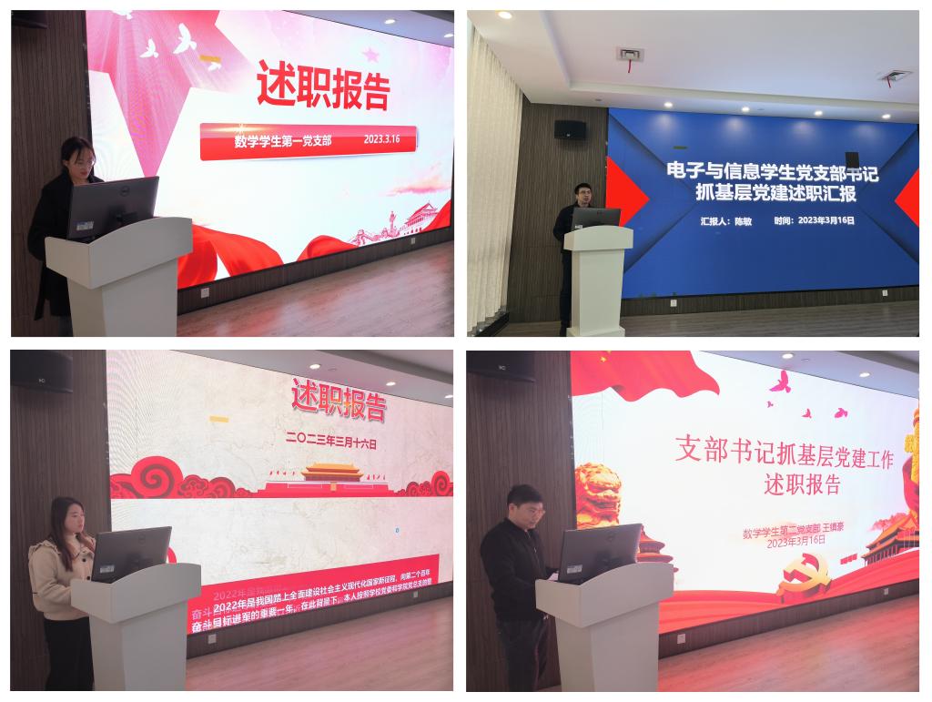 会上,各位党支部书记从自身实际出发,结合党支部一年来的工作情况,分别从多个方面进行展开:推动落实“第一”议题制度情况;推进学习贯彻习近平新时代中国特色社会主义思想、习近平重要讲话精神和党的二十大精神等思想建设情况;推动支部建在团队上,服务学院党政中心工作情况;推进党支部标准化规范化建设情况;充分发挥党支部战斗堡垒作用和党员先锋模范作用情况;大抓基层大抓支部,落实责任制情况;严格落实“三会一课”、主题党日等组织生活制度,加强党员教育管理监督情况;履行抓党建工作中存在的问题及原因分析和下一步工作目标及思路举措。