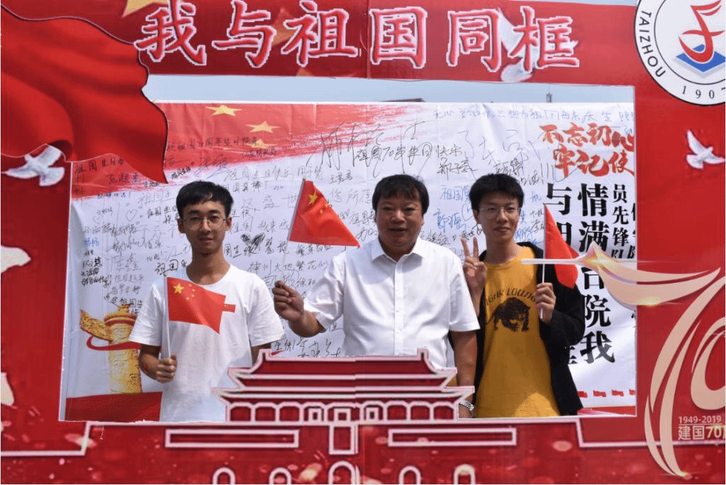 活动中,台州学院广大师生积极参与,以实际行动抒发对祖国的美好祝愿,晒出浓浓爱国情。校党委书记崔凤军,党委副书记潘通天、金先龙,副校长王正、胡韶光等领导到场合影,真切表达对祖国的祝福。言语之间,都是对国家昌盛、民族复兴的满满自豪感。活动过程中,同学们也纷纷手执国旗,在祝福祖国的背景板前合影、打卡留念,共庆新中国成立70周年。用最简单的动作,表达自己的心声;用最直观的方式,致敬伟大的祖国;用最真挚的情感,寄语“中国梦”。