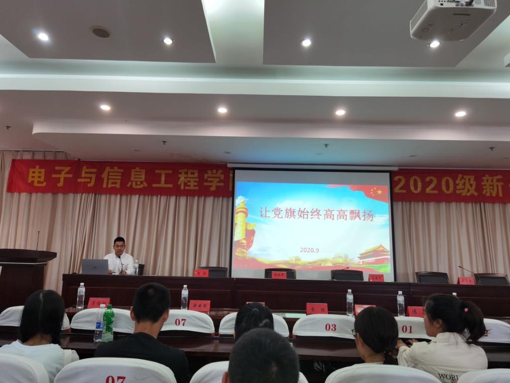 为加强新生政治理论学习,传播党的主流思想,引导学生树立正确政治方向,9月22日、24日,电信学院党总支书记王奎东分两校区为学院全体20级学子讲授开学第一课,题目为《让党旗始终高高飘扬》。