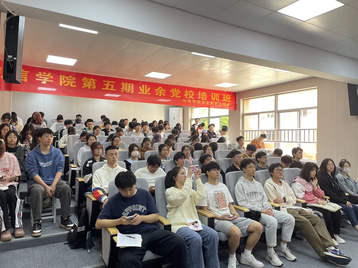 4月27日,电信学院分两校区举办第五期业余党校开学典礼暨党课第一讲。学院党委书记王奎东出席并讲话,学院党委副书记冯荣、党委委员董立达、各学生党支部书记、学生党员及121名党校学员参加。