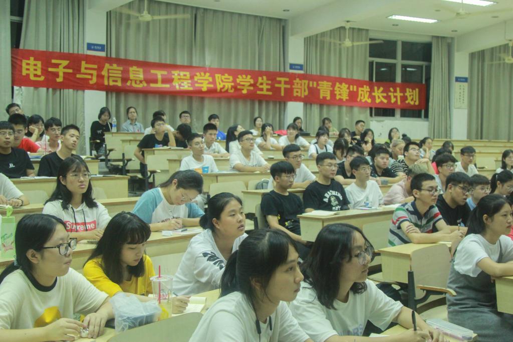 为培养当代学生干部优良作风,以身作则带动广大学生群体营造良好氛围,推动校园和谐建设,同时为了激发各位干部干事的潜力,使各位干部干事能够以极大的热情投入到学校的发展建设当中。10月7号晚上,电信学院第一期“青峰”成长计划在A4大教室举行。电信学院党总支副书记冯荣出席了本次讲座,并做第一期讲座。年级辅导员参加了本次成长计划,分团委学生会全体干事们接受此次系列培训。