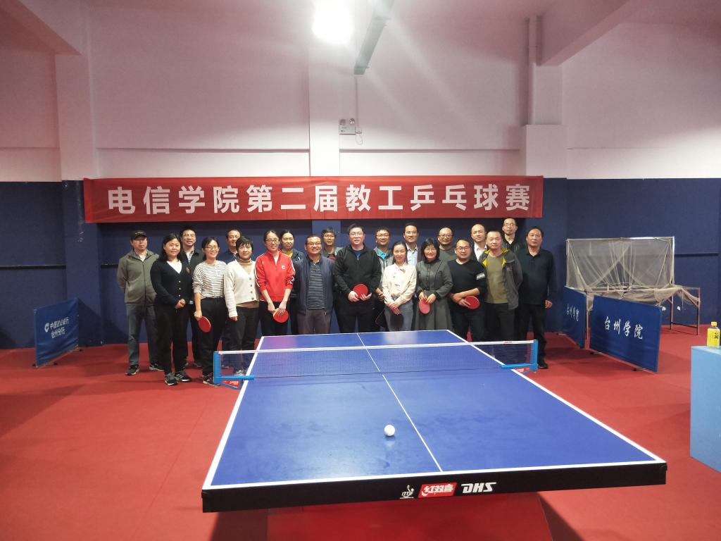 为丰富教职工课余文化生活,增进彼此沟通交流,营造和谐温馨教工之家,11月3日,由电子、行政两个工会小组承办的电信学院第二届教职工乒乓球赛在临海校区乒乓球馆隆重举行,工会主席冯荣、副院长张石清及学院4个工会小组的近40名教职工参加。