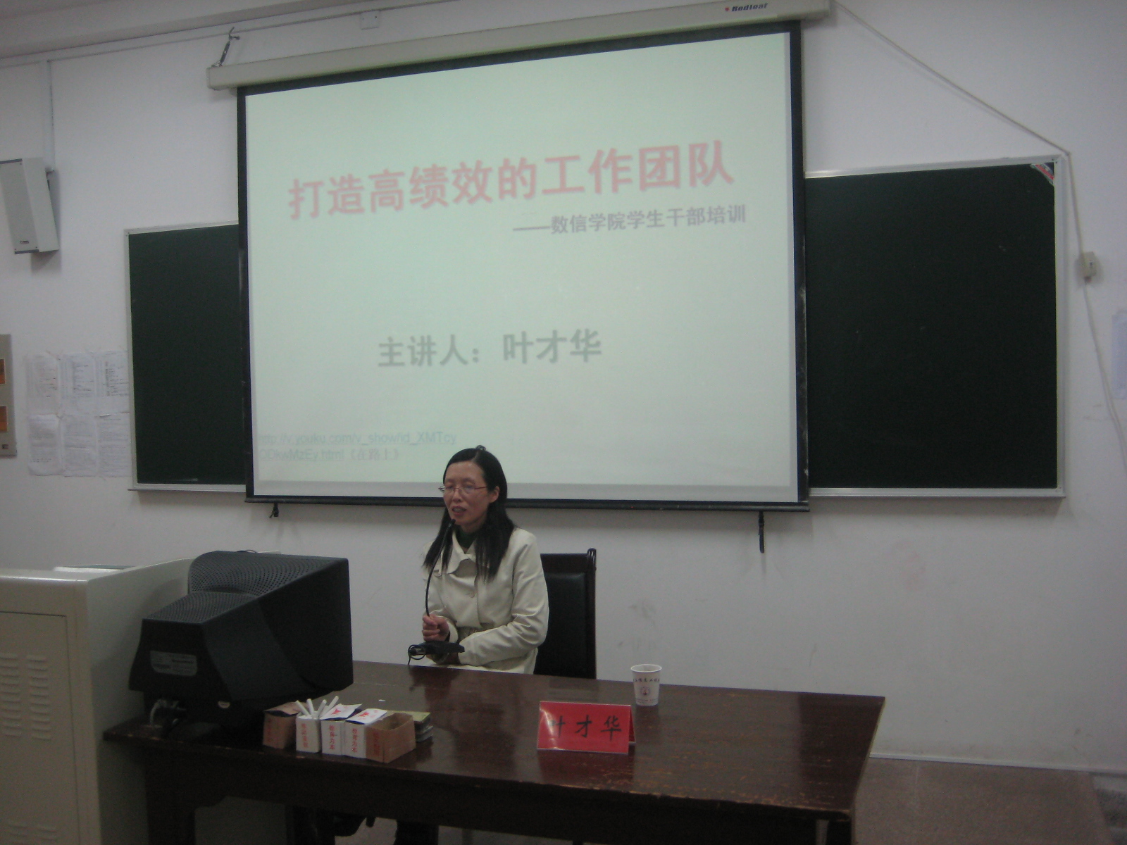 11月24日下午,数信学院干部培训系列课堂之“打造高绩效的工作团队”在5104举行。经贸管理学院叶才华老师担任本次授课教师。