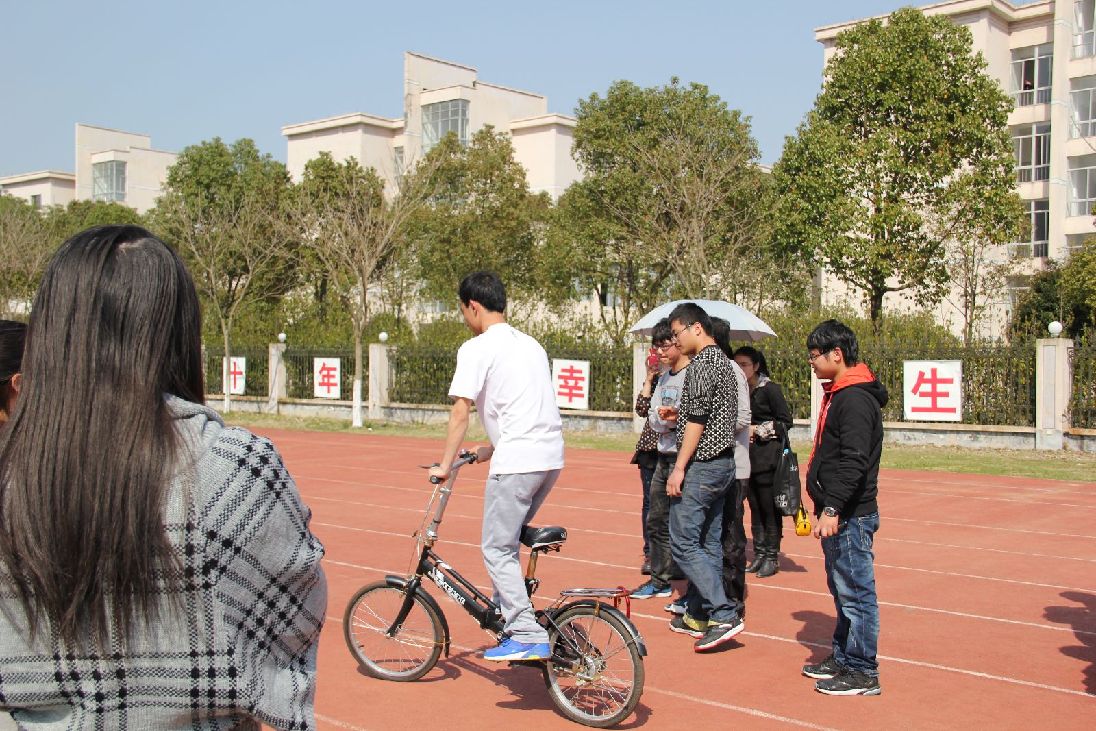 为了丰富同学们的业余生活,更好的把校园文化渗透到每个同学,数信学院于3月25日下午在田径场举行趣味运动赛。