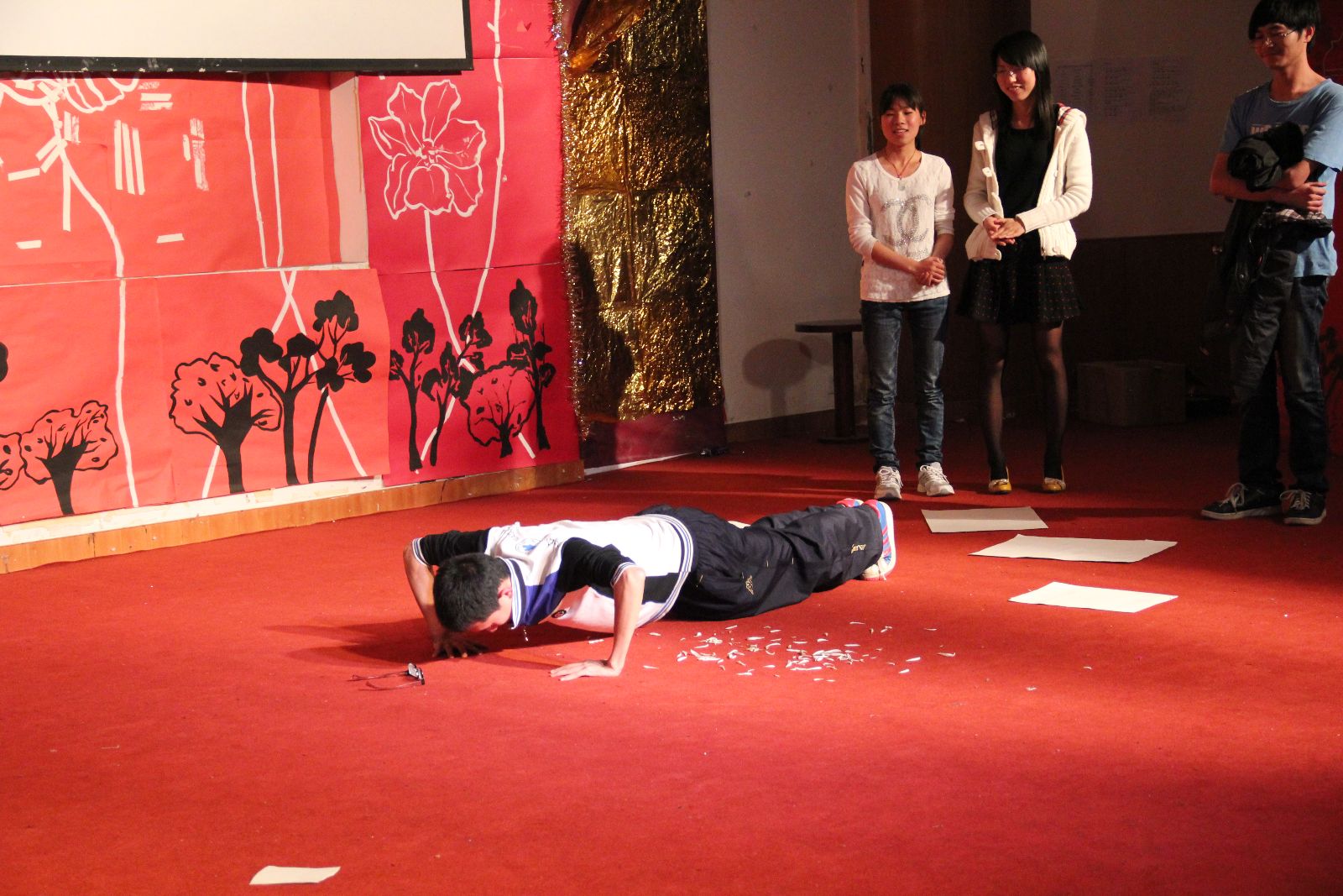 LK乐队以两首劲爆的歌曲激情开场,活力四射的音乐瞬间点燃了晚会气氛,台下观众热情回应,现场一片欢腾。紧接着四大社团的节目一一亮相:青春靓女,《舞蹈招待》,《三顾茅庐》,全新演绎。酸甜苦辣,平淡最美,品尝属于我们的幸福味道;曼妙舞姿,悠扬歌声,书写中华民族的传统精髓。更有精彩游戏,斗智斗勇,形式出奇逆转,high翻全场。