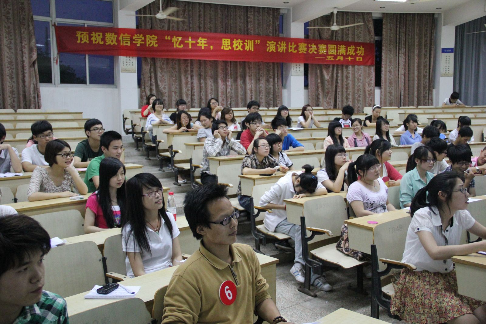 5月10日晚,数信学院于A3教室举行“忆十年 思校训”演讲大赛总决赛。评委由数信分团委书记程君岭,团学会各部门部长,副部以及大众评委组成。