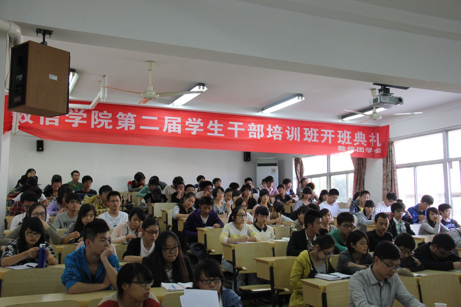 10月18日下午,数信学院第二届学生干部培训开班典礼在5104教室隆重举行。院党总支书记应哲、分团委书记程君岭出席此次开班典礼,与会的还有数信团学会全体成员及12级各班班委。