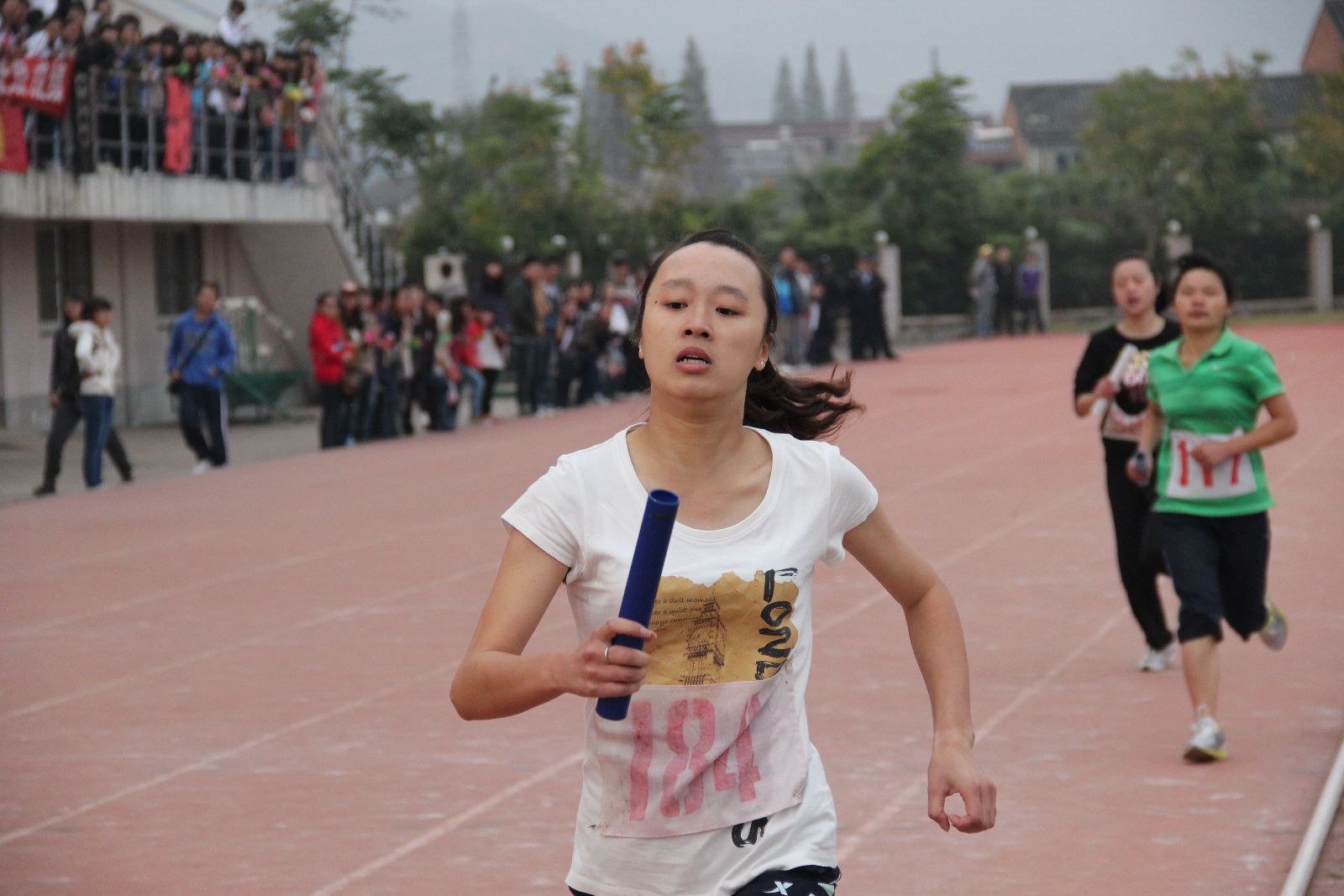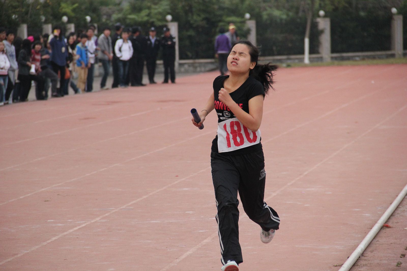 枪声响起,数信一棒迅猛飞出,遥遥领先。跑过半程,一棒在第二个弯道处不幸摔倒,此时数信有力的后援团,高喊:数信,加油!在声声的激励中,她凭借着顽强的毅力,艰难爬起,坚持着跑完了剩下的100米,将接力棒交接与二棒。此刻,数信优势不在,从第一落在了第五的劣势地段——— 与第一有约半个弯道的差距。之后虽然二棒三棒奋力追赶,差距缩短。但仍处于第五的位子,与第四约有20米的差距,离第一约有60米的距离。就在大家快丧失信心、沮丧连连时。一匹黑马杀了出来,她是数信的四棒,迈着飞速的步伐,迅如捕食的猎豹,在火红的跑道上跳跃。快快快!!!一个,两个,接近了,接近了,三个,超越!飞飞飞,奔奔奔。在冲过终点线的那一刻,尖叫欢呼声震耳欲聋、此起彼伏。第二,第二,在四朵金花的齐心协力下,数信摘得了一枚宝贵的银牌。