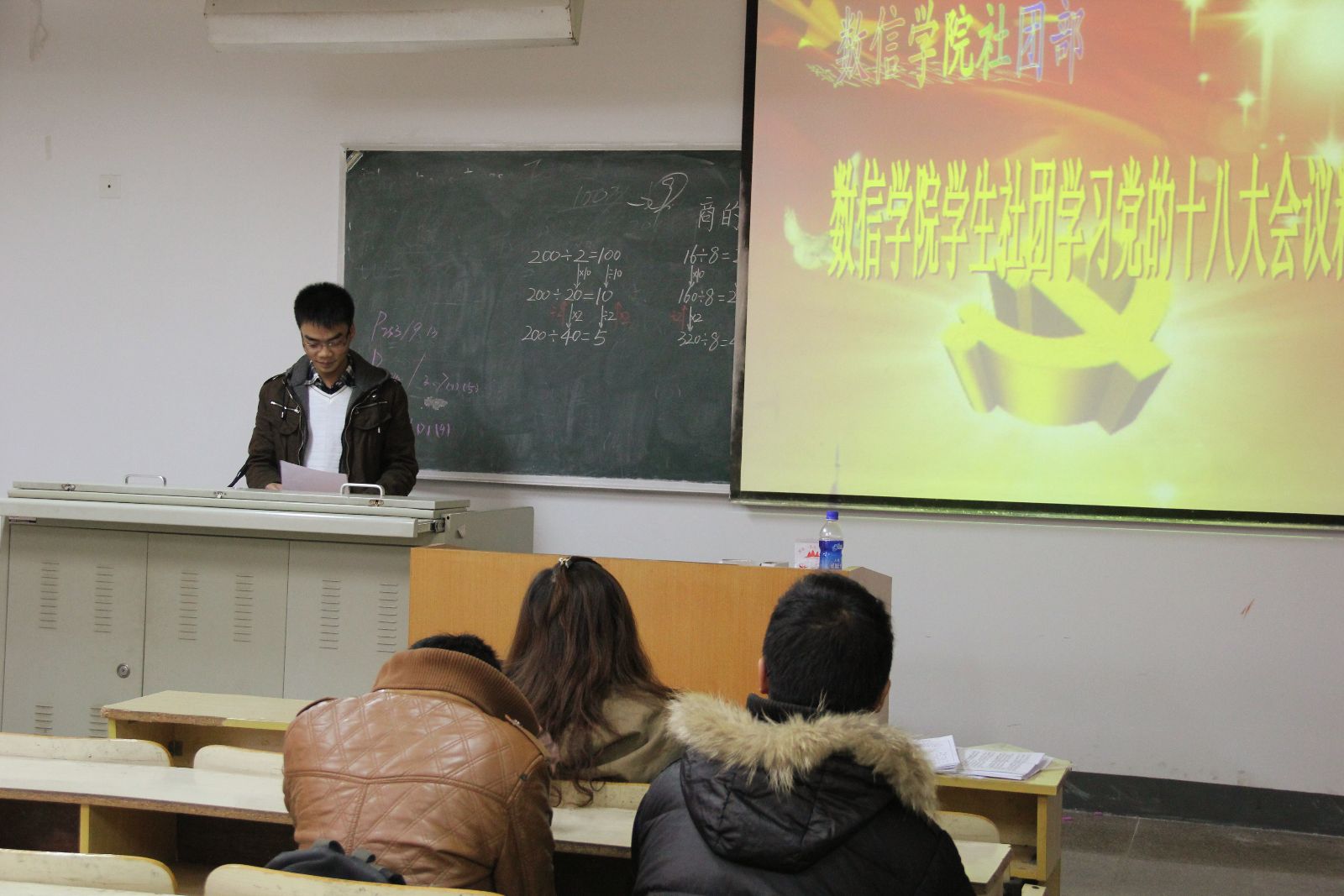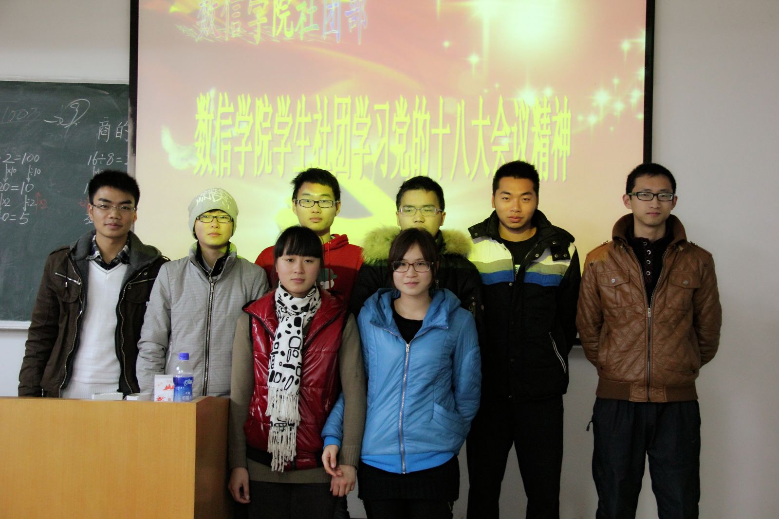 通过此次十八大精神会议的学习,数信将会以更饱满的热情积极投入到社团文化建设中,同心协力,继往开来,不断开创数信社团工作的新局面。