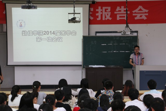 9月25日下午,数信学院新一届团学会第一次全体会议在A4教室召开。14级辅导员兼团学老师张鹏出席会议,团学会主席刘鑫主持大会。