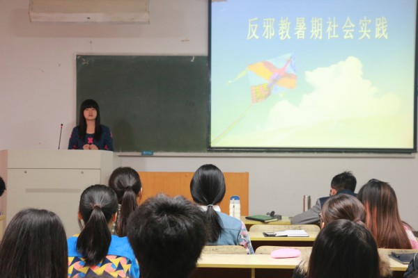 交流会上,在团学会社团部部长李安琪的主持下,四支暑期实践队伍“电脑卫士”、“阳光家教”、“景区环卫”、“反邪教”的负责人严李健、王宁、蒋阳琼与陈怡任依次上台与大家进行交流。他们分别从内容简介,流程说明,成果展示,经验总结四大方面进行总结交流。交流会最后,张鹏老师表示各学子应重视并尽早参与暑期社会实践,在实践过程中不能仅限于参与,更重要的是将知识与社会服务相结合,学以致用。