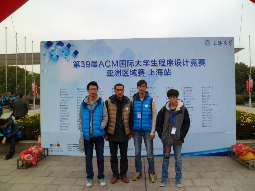 2014年12月7日第39届ACM/ICPC国际大学生程序设计竞赛亚洲区预选赛上海站比赛在上海大学举行。本站比赛共有来自三个国家180多所高校的300多支队伍参赛,我校ACM集训队选拔一支队伍参赛,经过预赛的拼搏最终杀入上海站决赛,并在决赛中排名103位,获得铜奖,这是我校在大学生程序设计竞赛中取得的一次重大突破。