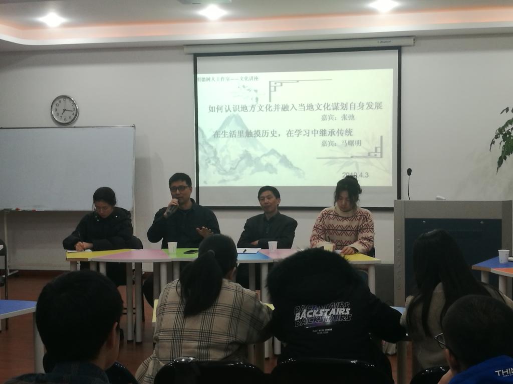 4月3日晚,“明德树人”辅导员工作室于临海校区活动中心举办了走进地方文化专题讲座,特邀临海市作协主席张弛和天台山文化研究会副会长马曙明为同学们开讲,讲座吸引了各学院40余名同学参加。