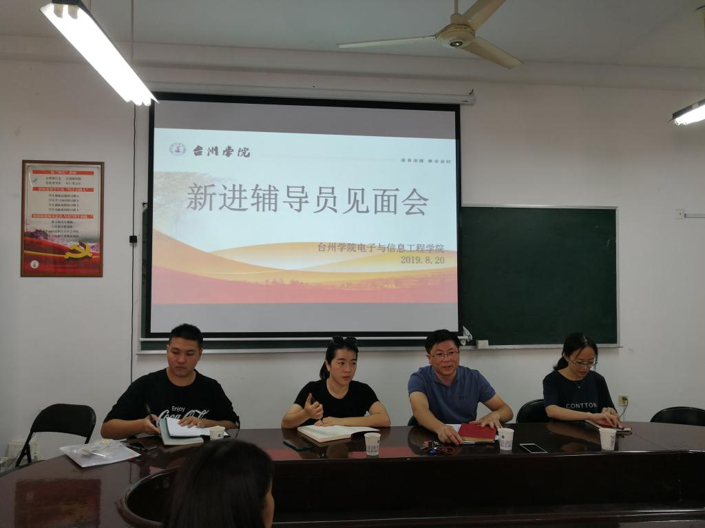 8月20日上午,电信学院在临海校区学院会议室举行2019年下半年新入职辅导员见面会,学院党总支副书记冯荣应邀出席并致欢迎词,全体辅导员及各学生组织负责人参加。