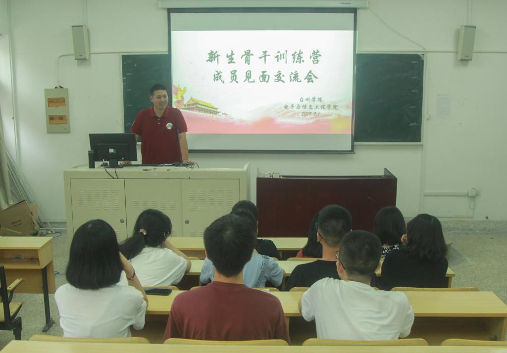 新生骨干训练营培训内容包括“理想信念教育、大学适应性训练和领导力素养提升”三大模块,通过集训的方式,让新生尽快融入大学环境,并培养出敢于担当奉献,综合能力突出的优秀学生骨干。为帮助“新生骨干”了解学校文化,融入校园,同时加深成员之间的联系,电信学院分别在椒江和临海两个校区举行了“新生骨干训练营成员见面交流会”。学院新生辅导员蔡荻和沈迪分别出席了本次交流会,向新生们介绍了学校与学院的大致情况,在强调安全和纪律问题的同时为接下来的训练营活动指明了具体的目标和方向。各位新生在交流会和谐愉快的氛围中,介绍了自己,熟悉了彼此,增加了友谊。