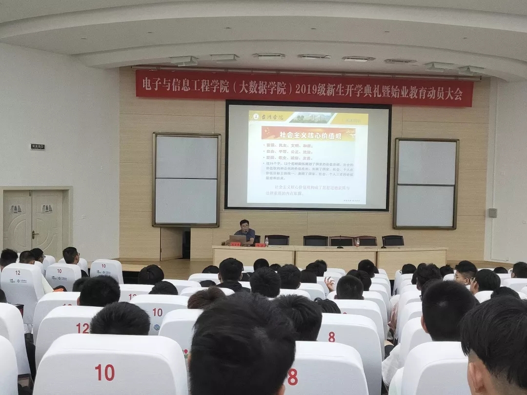 近日,电信学院在学术报告厅对全体新生开展了“培育与践行社会主义核心价值观”的主题教育活动。本次主题教育由学院党总支副书记冯荣主讲。