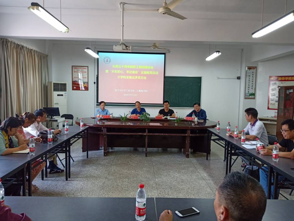 座谈会上,陈英才院长代表学院班子对满三十年教工龄的教职工长期为学校、学院辛勤工作的精神及做出的贡献表示崇高的敬意和衷心的感谢。他说,老教师是学校发展的见证者和基石,希望大家继续努力,做好传帮带,带领青年教师为学校建设作出更大的贡献。