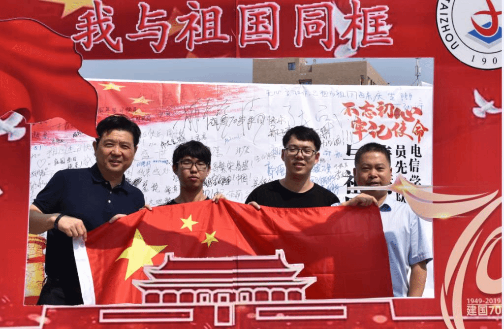 为庆祝中华人民共和国成立70周年,电子与信息工程学院学生党员先锋队于9月26日在至善广场举行“情满台院,我和祖国同框”活动,号召广大青年学生与国旗合影,以祖国为荣,为祖国祝福。