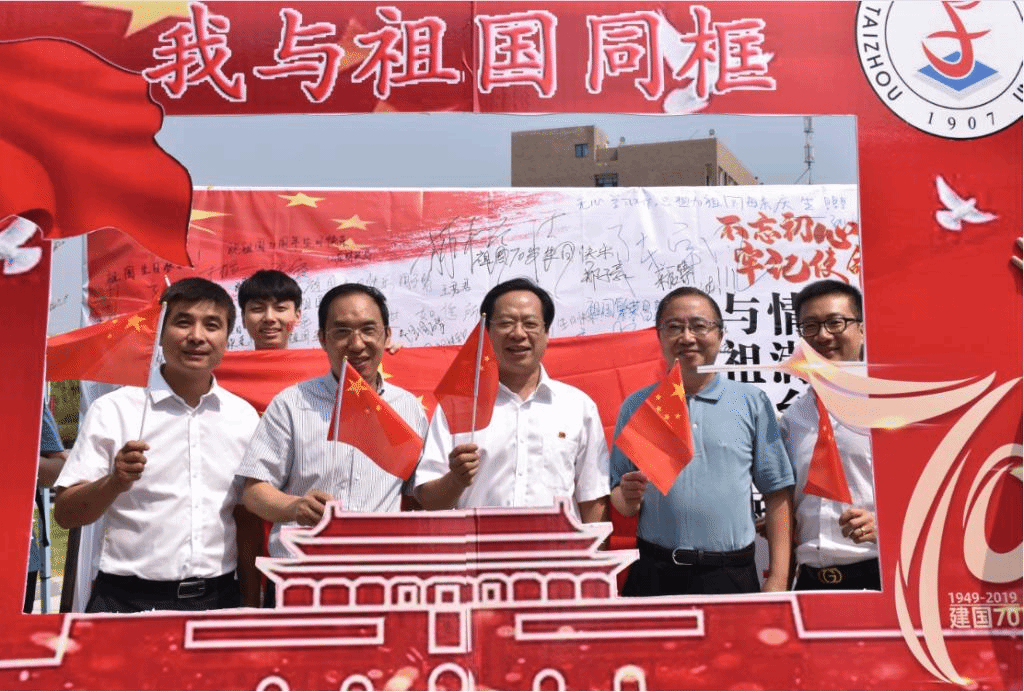 活动中,台州学院广大师生积极参与,以实际行动抒发对祖国的美好祝愿,晒出浓浓爱国情。校党委书记崔凤军,党委副书记潘通天、金先龙,副校长王正、胡韶光等领导到场合影,真切表达对祖国的祝福。言语之间,都是对国家昌盛、民族复兴的满满自豪感。活动过程中,同学们也纷纷手执国旗,在祝福祖国的背景板前合影、打卡留念,共庆新中国成立70周年。用最简单的动作,表达自己的心声;用最直观的方式,致敬伟大的祖国;用最真挚的情感,寄语“中国梦”。