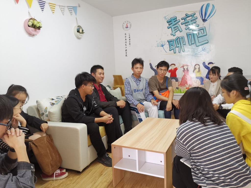 1018日晚,电信学院分团委学生会在学生公寓组织了“青亲聊吧”第005期活动。电信学院辅导员沈迪主持本次活动,来自全院各新生班级的学生代表及部分老生代表近20人参加。本次聊吧以“大学生如何平衡工作与学习的关系”为主题,师生之间进行了频繁的交流与互动。