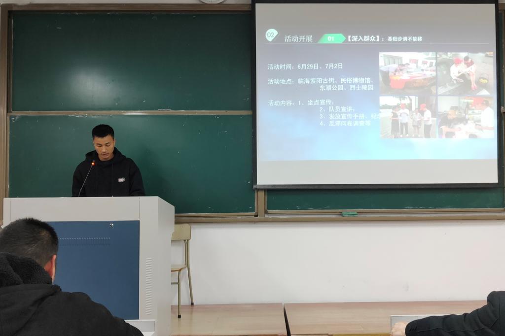 本次评选会共有七支队伍参加,以各实践队代表通过PPT展示来介绍活动和活动过程为主要形式。社会实践主题包括“反邪”、“义修”、“义教”、“科普”等多个方面。各实践队活动目标明确,前期准备工作完备充足,活动过程井然有序,受到当地民众的赞扬和多家报社的报道。展示过后,冯荣对参与评选的七支队伍一一进行了点评,在肯定与表扬的同时也指出了活动中出现的不足。冯荣提到每一位参与社会实践的成员,都要有高度的关于电信学院的归属感,要让活动内容紧紧围绕主题展开,要将社会实践服务常态化从而建设出一个完整的、常态化的社会实践基地,为今后学院社会实践活动的发展指明了方向。最后,冯荣热情号召19级新生加入到下一次的暑期社会实践中去。