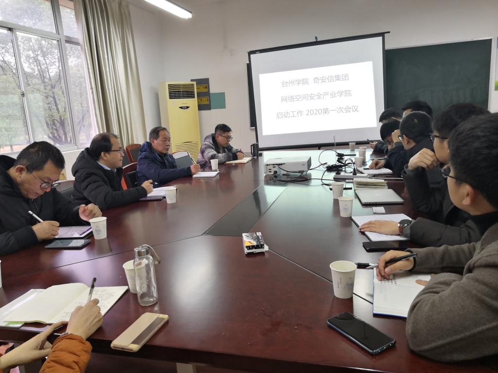 2020年1月16日下午,台州学院奇安信网络空间安全产业学院启动工作第一次会议在临海校区5115会议室召开。产业学院院长陈英才、奇安信集团浙江分区经理林尚晓、教育行业部华东区负责人朱天宝及相关人员出席了会议。