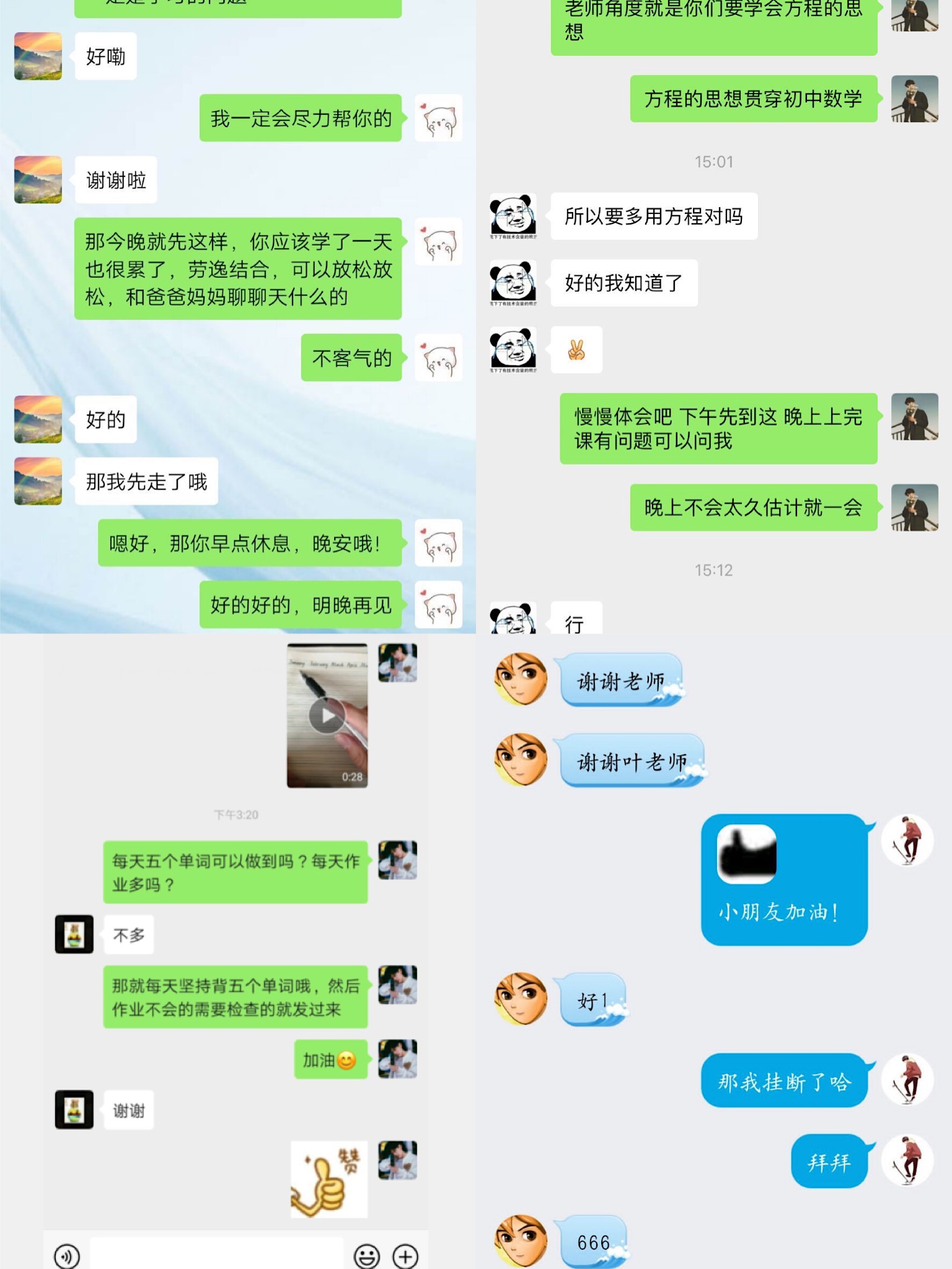 此次活动我分配到的是一名初二的学生,他的父母奋战在武汉疫情的一线,这让我十分的尊敬,也让我下定决心不让前线的他们担心,我一定做好家教任务让前线放心。由于疫情影响不能面对面式授课,只能通过网上视频授课,这是我没有经历过的,所以对我来说也是一种挑战,但我相信通过这几个星期的网上听课和我扎实的师范生能力我可以掌握好网上授课。