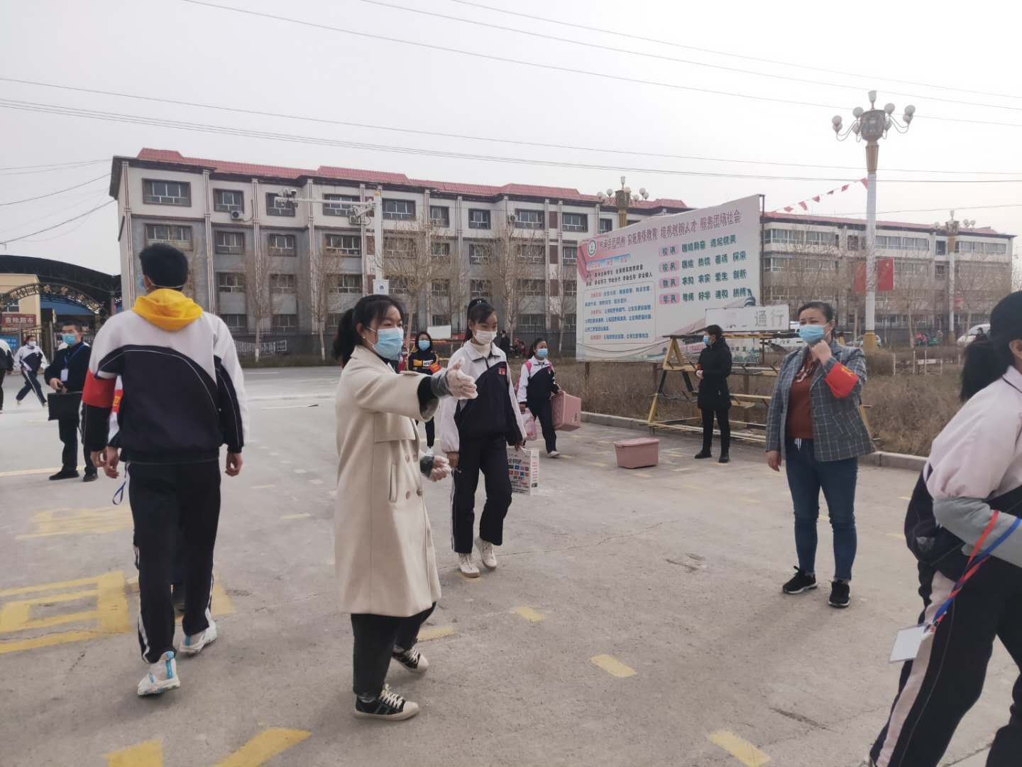 18数学1班韩俊丽同学在金银川镇一团中学面临中学生开学复课,人手紧张困难时,第一时间赴校报名,支援复课防控工作。韩俊丽负责疏散人群,使学生之间保持安全间隔,用实际行动践行“不忘初心,方得始终”的责任担当。