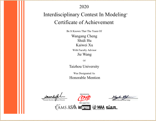 这是我校数学建模队首次获得国际级建模赛事的Honorable Mention奖项,由于竞赛时间在寒假期间,又恰逢新冠病毒疫情,指导老师和同学们克服各种困难,积极备战,直至取得了突破性的成绩。