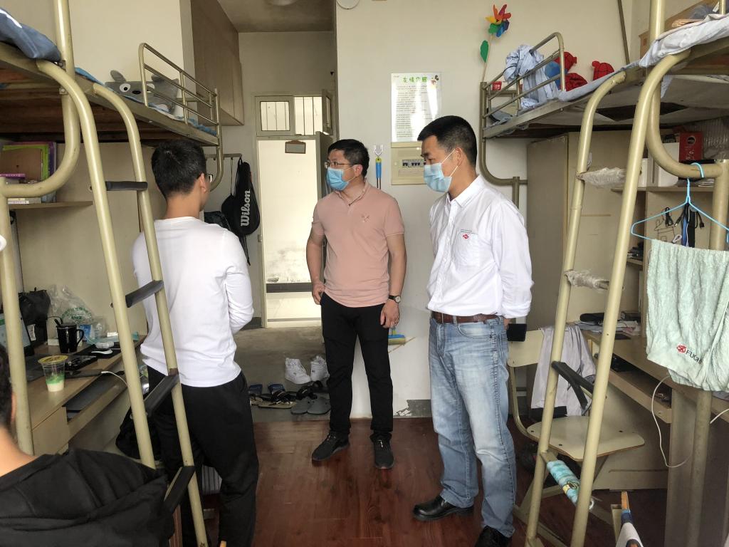 走访过程中院领导了解了部分学生的就业进程、考研复试准备情况、现阶段的主要困难,鼓励同学们正视挑战,调整情绪,迎难而上。并询问学生的返校生活状态,叮嘱同学们疫情期间要遵守学校的各项相关规定,按照网格化管理的相关要求,做好每日晚签、测温等,同时保持寝室卫生,做到勤洗手、多通风、常锻炼,做好个人防护。