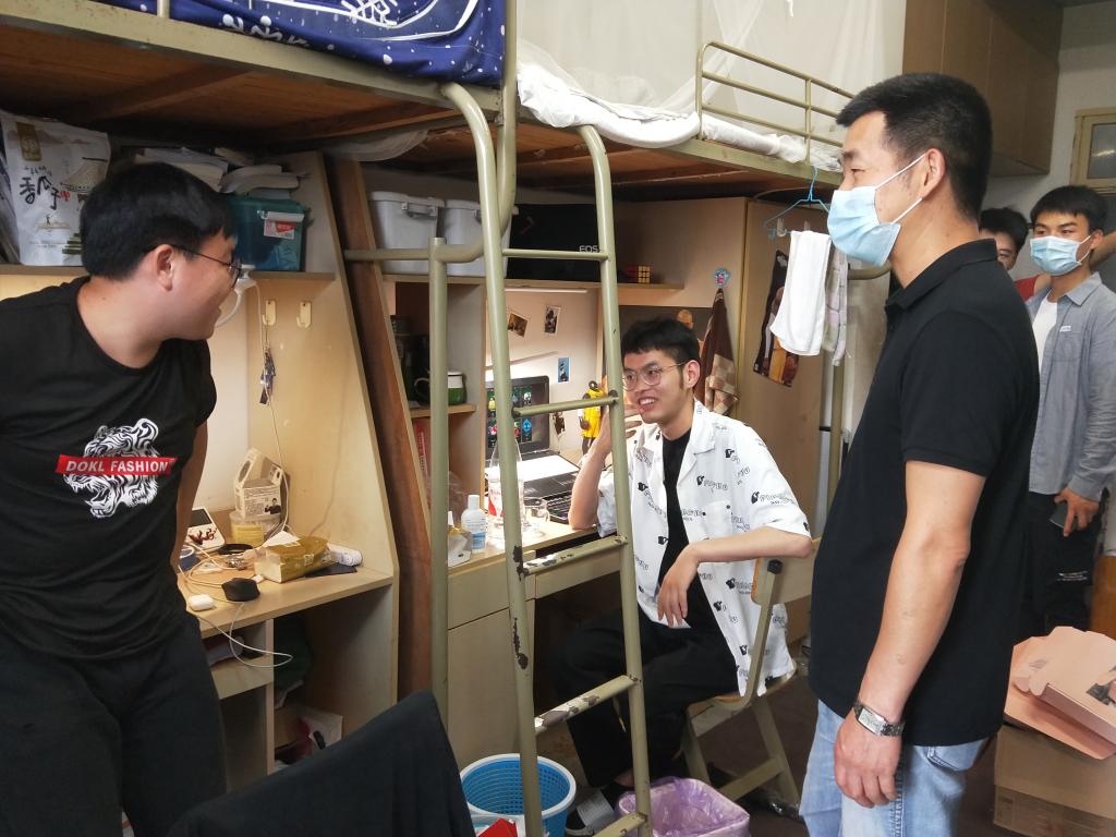 为落实上级指示精神,进一步做好疫情防控工作,确保返校学生能够健康、安全、有序的学习生活,5月21日下午,电信学院党总支书记王奎东、副书记冯荣、全体辅导员实地深入学生公寓认真检查落实宿舍疫情防控和安全工作。