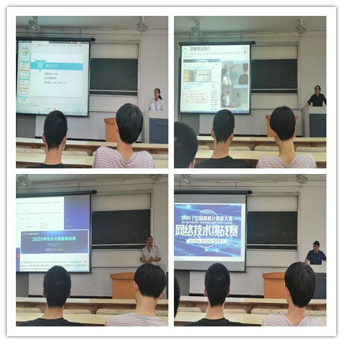 大会伊始,陈盈老师介绍了计算机系学科竞赛基本信息,指出学科竞赛不仅有利于培养创新精神、实践能力,而且能激发学生学习兴趣,促进优良学风的形成。随后程序设计竞赛团队、多媒体设计竞赛团队、电子商务竞赛团队、网络与信息安全竞赛团队、服务外包竞赛团队、物联网竞赛团队、大数据竞赛团队、网络技术竞赛团队、软件开发竞赛团队等9个竞赛团队负责老师依次上台就各团队所涉及的A类竞赛的主要内容、方向、所需的专业技能作了详细介绍。