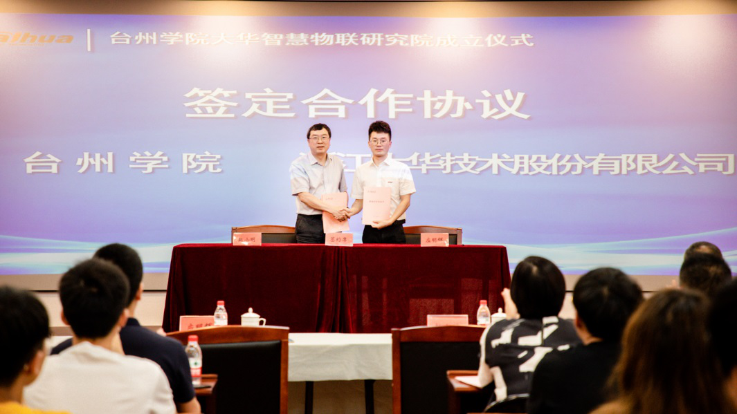 仪式上,学校与大华股份签订了合作协议。大华股份向学校捐赠200万元,支持智慧物联研究院建设。