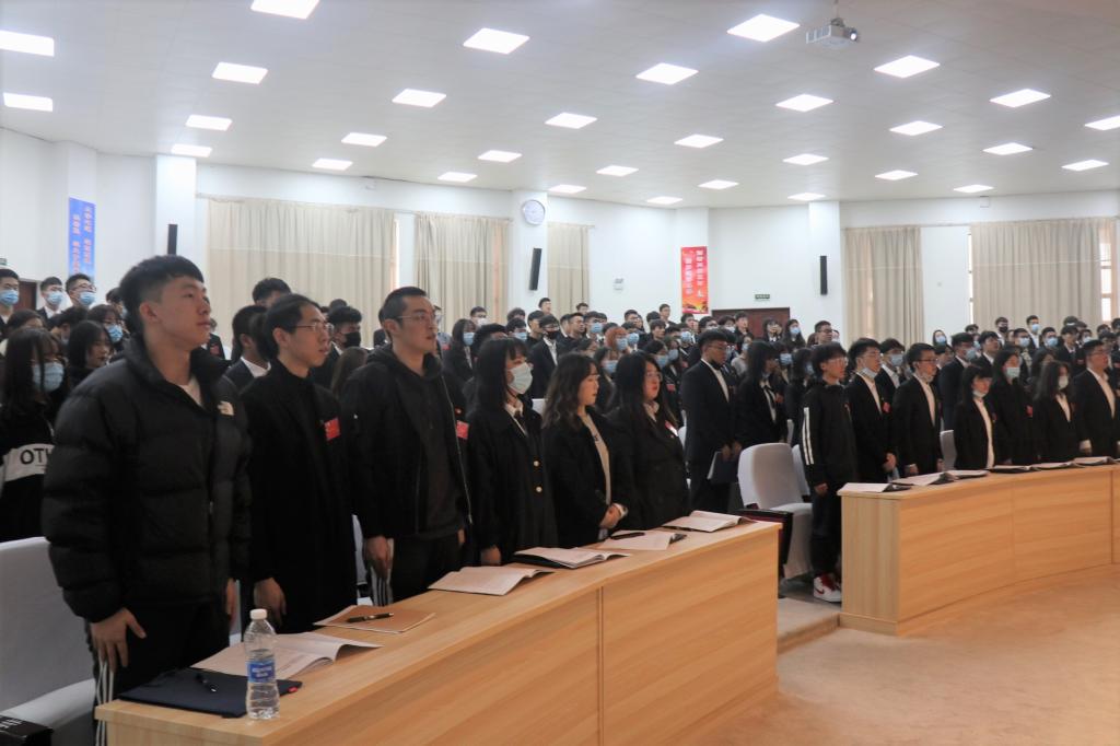 大会在庄严的国歌声中拉开帷幕。潘垚作开幕致辞,代表校团委向大会的召开表示热烈的祝贺,对学院团学会在加强大学生思想政治教育、学生第二课堂、校园文化建设等方面的工作予以肯定,希望广大团员青年永葆青春朝气,以饱满的热情投入到学习、工作中去,为学院发展增添新的光彩。