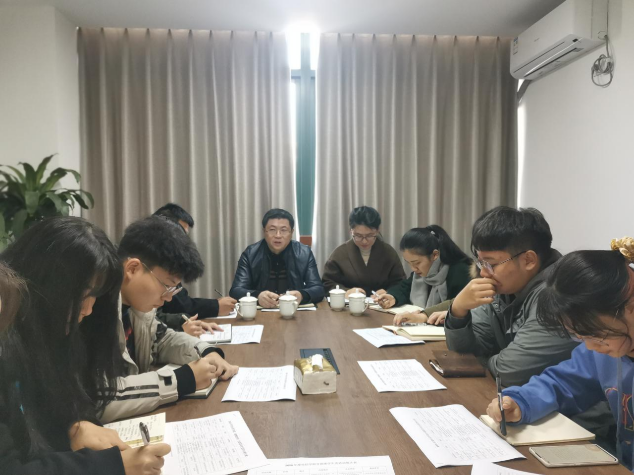 会上,团学会主要学生干部依次结合分管部门对过去一年的工作进行了汇报总结。随后,董立达、周吉、沈迪三位老师分线分块进行了点评,着重分析了日常工作中存在的问题及改进策略,并对下一年度学生工作规划提出具体建议。最后,党总支副书记冯荣作总结发言,他在肯定团学会2020年工作的同时,向与座的师生强调指出:2021年是学校、学院“十四五”发展的开篇之年,师生都要肩负起强烈的使命感、责任感,及早做好谋局规划与系统设计,在助力学校、学院快速发展的关键时期提升参与度、显示度和贡献度。作为主要学生干部,工作更要负责,担当更要主动,沟通更要及时,执行更要到位,考虑更要周全。各学生干部纷纷表示在下一年度的团学会工作中努力做好本职工作,化机遇为动力,不忘初心,砥砺前行!