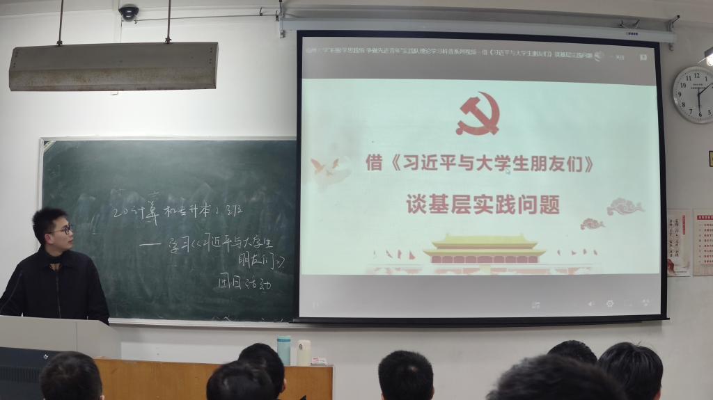 团日活动中,由各班团支部书记带领各班同学一起阅读《习近平与大学生朋友们》一书。该书讲述了1983年12月至2019年7月间,习近平同志在河北正定、福建、浙江、上海和到中央工作以来,与大学生们交往、交流、交心的故事,真实记录了他对青年特别是大学生始终如一的关注、关心、关爱,系统地展现了习近平总书记关于青年工作重要思想的发展脉络,对做好新时代党的青年工作、助力当代青年健康成长具有重要示范意义。习近平总书记不仅关注、关爱以大学生为代表的广大青年,更在培养先进人才和基础学科建设上倾注了大量心血。习近平总书记的谆谆教诲帮助大学生朋友们确立了更清晰的目标,让大家懂得既要“关注人们的精神世界”,也要“关注社会现实问题”,在认识自己的同时更好地认识世界,在学习理论知识的同时注重结合实践,以更加积极的姿态投入今后的学习和生活。