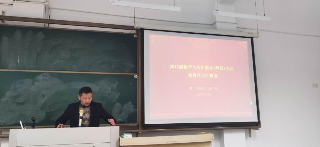 1月14日下午,电信学院举行2017级数学与应用数学(师范)专业教育实习汇报会。电信学院相关领导、各实习学校带队教师、2017级数学与应用数学(师范)专业学生参加了本次汇报会。