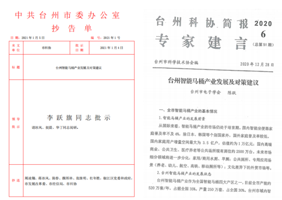祝贺我院教师《台州智能马桶产业发展及对策建议》的调研报告获得市委书记李跃旗同志的批示。