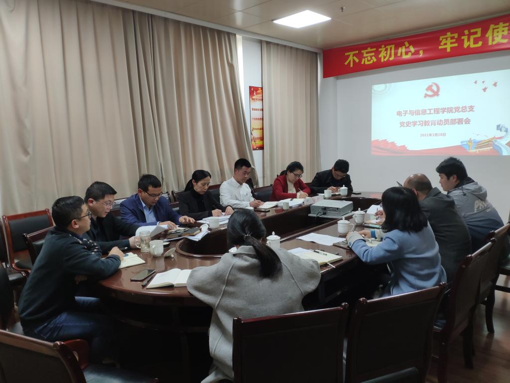 3月18日,电信学院召开学院党史学习教育部署会,深入学习贯彻校党委书记崔凤军在全校党史学习教育动员部署会上的重要讲话精神,贯彻落实全校党史学习教育动员部署会精神,安排部署学院党史学习教育工作。