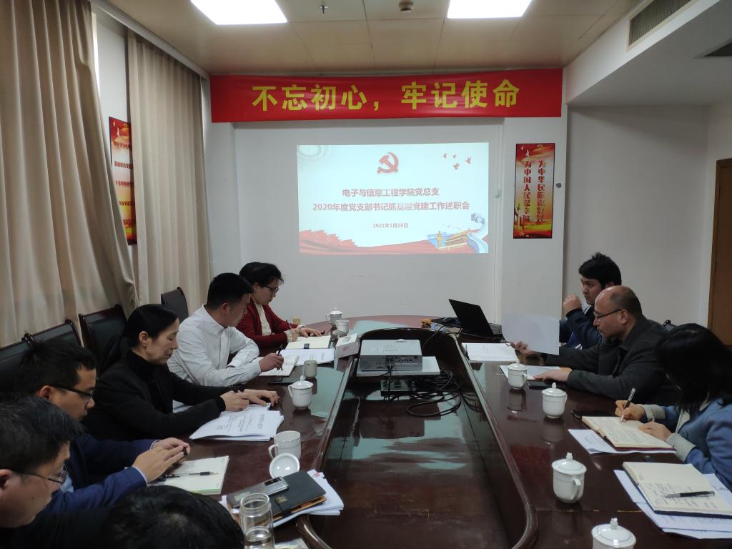 3月18日,电信学院召开2020年度党支部书记抓基层党建述职评议会,对过去一年的基层党建工作进行总结,对基层党组织书记履行党建第一责任人职责情况进行评议。党总支书记王奎东主持并讲话,学院领导班子、总支委员、党支部书记参加会议。