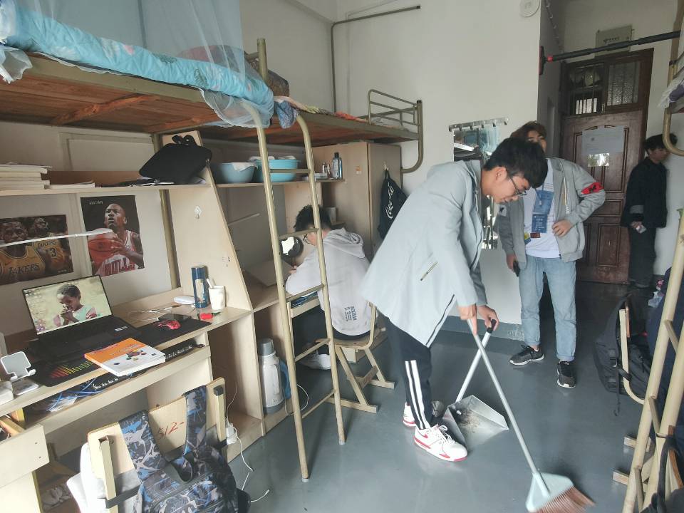 各宿舍在寝室长的带领下,积极投入到大扫除活动中,有的拿着扫帚清扫地面上的垃圾和尘土,有的用抹布擦拭桌面和书架,有的整理暖壶和板凳,有的清理墙壁上的污渍。大扫除活动是一种手段,目的是督促同学们养成良好的卫生习惯。学院公寓自律委员会在活动前期认真部署,在扫除完成后负责检查工作,认真对各宿舍铺面整齐度、爬梯整洁度、书架物品摆放情况及宿舍内整体干净整齐情况等多项指标进行了记录。