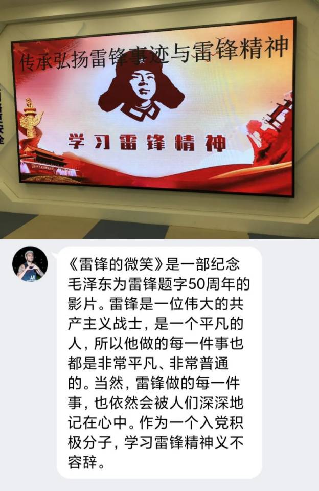 团日活动中,团员青年们学习了雷锋的生平事迹及雷锋精神,深入领悟雷锋精神。同学们就“雷锋精神”各抒己见、分享所思所想,气氛热烈融洽。广大青年团员在参与活动中自我教育、自我提升、不断创新,更好地成为雷锋精神的弘扬者、社会主义道德规范的实践者、良好社会风尚的创造者。