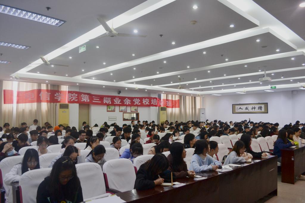 4月11日、15日,电信学院分校区举行第三期业余党校开学典礼。学院党总支书记王奎东、党总支委员董立达出席讲话并讲授第一课,学生党支部书记陈佳阳、陈敏,学生党员、学生党员先锋队成员及363名党校学员参加。