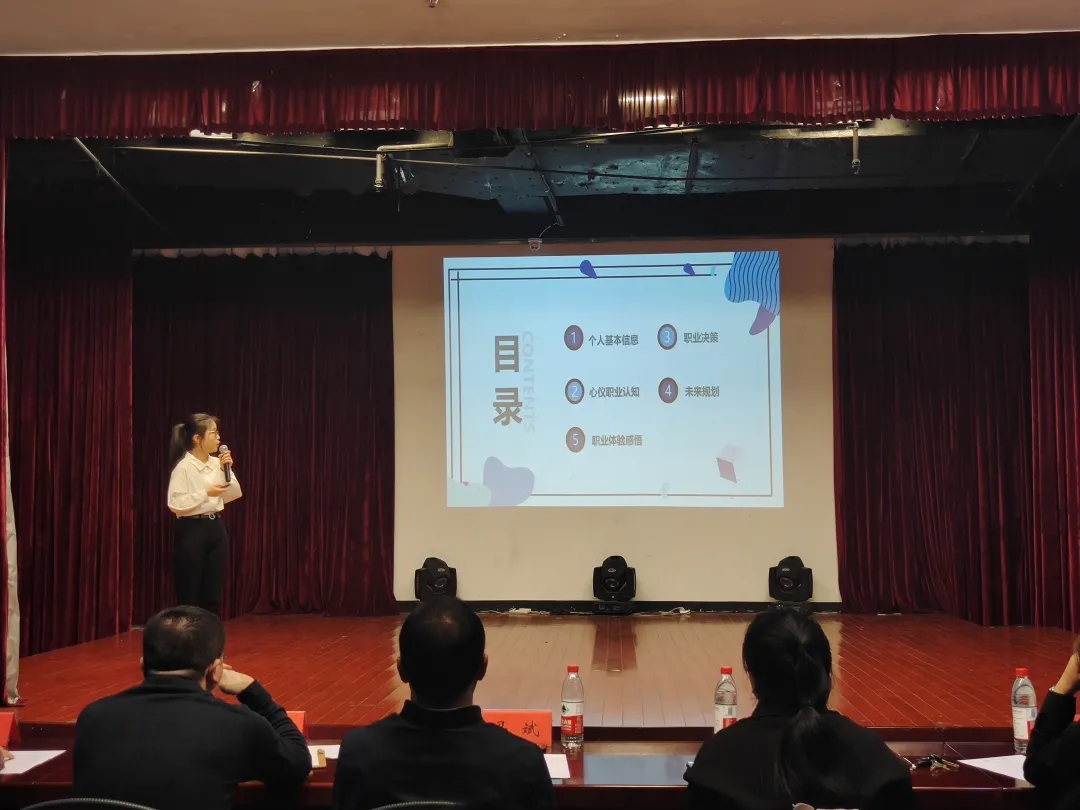 经过前期宣传和初赛筛选,共10名选手晋级决赛。他们分别从个人的目标职业出发介绍了个人性格特点、职业特点、职业前景、未来学习规划、未来职业规划等有关方面。在各位学生完成自己的讲说后,马斌老师对参赛选手朝气蓬勃的精神面貌、新颖独特的规划思路和激情四射的演说给予了充分赞扬,同时也针对各个选手的不足之处提出相应建议。