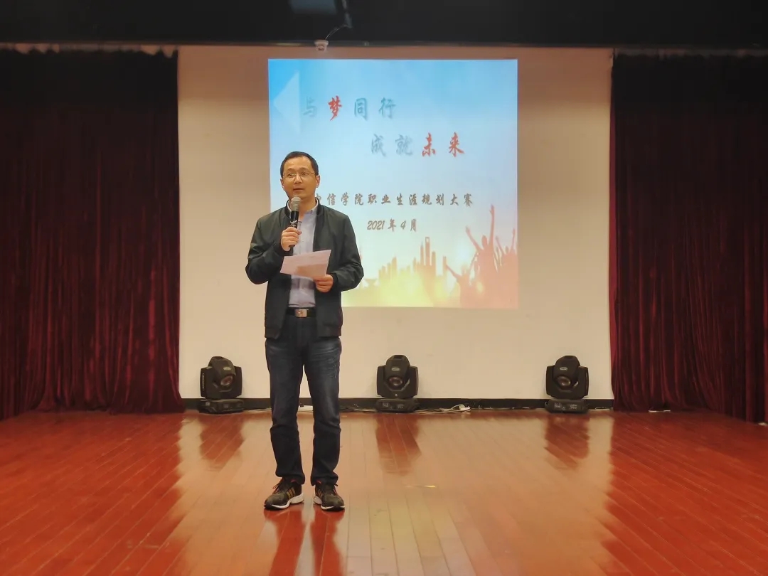 为进一步提高大学生就业竞争力,有效推动大学生就业指导工作的开展,4月21日,电信学院于椒江校区小礼堂举行了“与梦同行,成就未来”职业规划大赛决赛。校党委学工部副部长、学生处副处长马斌、学院党总支副书记冯荣,党总支委员董立达应邀出席,辅导员代表及各年级学生代表参加。