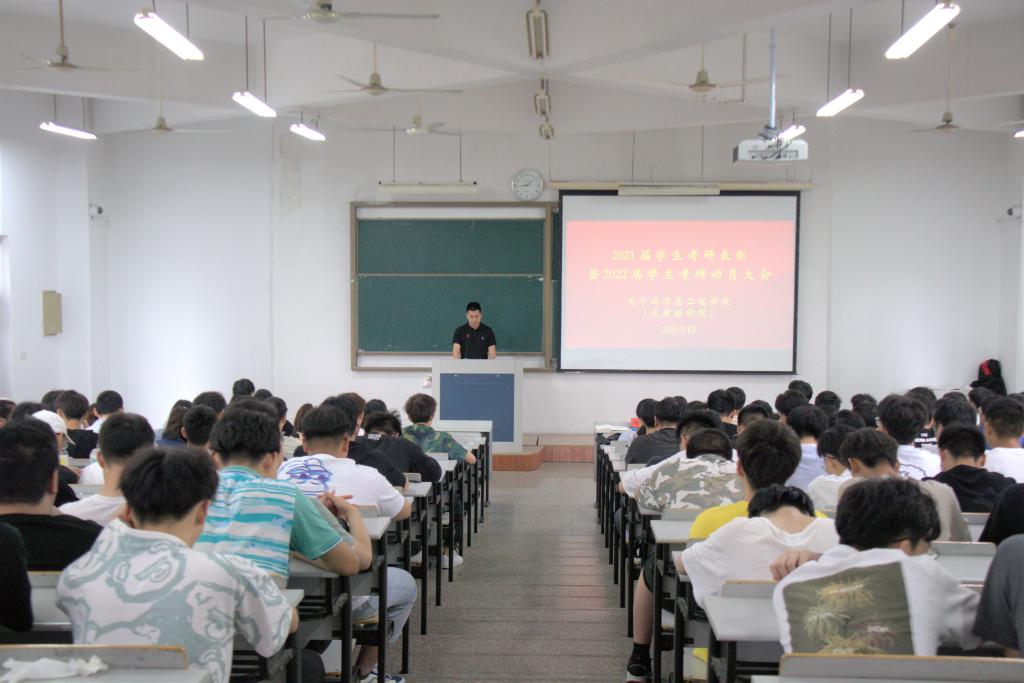 5月13日,电信学院分校区召开2021届考研学生表彰暨2022届学生考研动员大会。党总支书记王奎东、副书记冯荣出席并讲话,党总支委员董立达、辅导员沈迪分别主持会议,2021届考研学生代表及2022届全体学生参加。