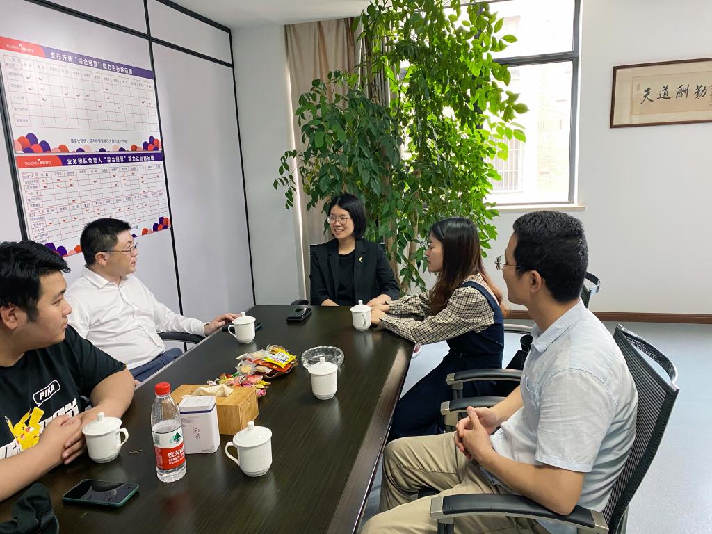 为进一步了解学生就业情况,提升用人单位对学院人才培养质量和就业服务工作的满意度,6月2日,电信学院党总支副书记冯荣率队前往湖州用人单位走访,辅导员沈迪、郑行和吴佳妲陪同,受到浙江泰隆商业银行湖州分行副行长冯玲君、营业部支行行长何建伟等的热情接待。