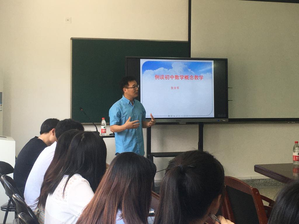6月25日下午,电信学院诚邀浙江省特级教师张爱军作 “例谈初中数学概念教学”专题讲座。电信学院部分教师,数学与应用数学(师范)专业18级学生聆听了此次讲座。