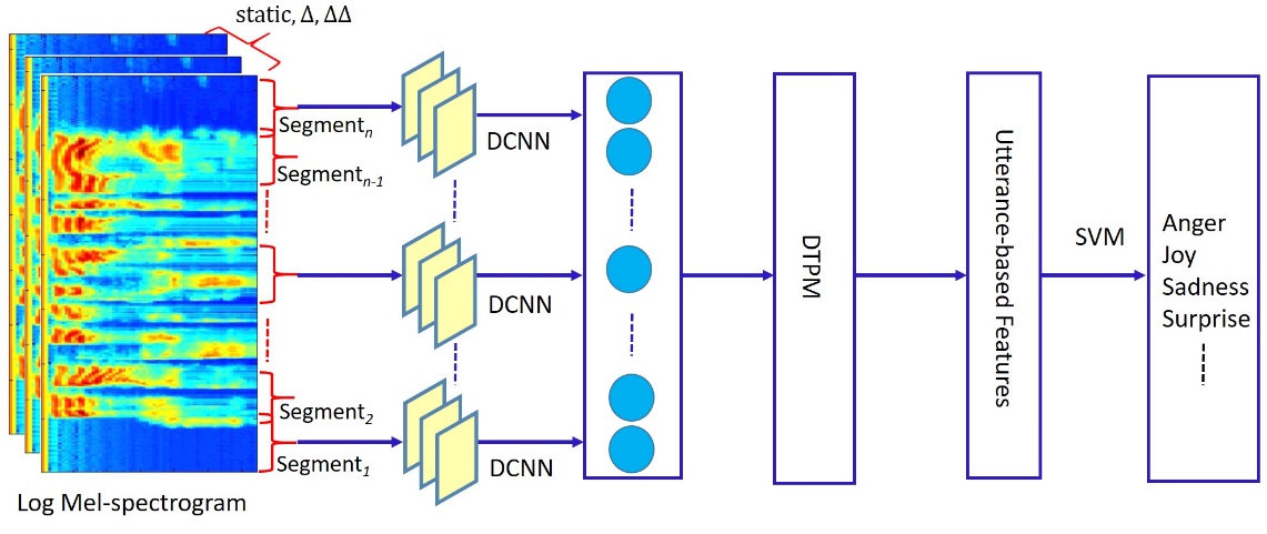 利用说话人的语音信息来识别用户的情感状态,即语音情感识别,是当前人工智能领域一个热点研究课题。本文针对现有手工提取的语音情感特征参数存在的“情感鸿沟”问题,研究利用新发展的深度卷积神经网络(CNN)从原始的语音信号频谱中学习出高层次的语音特征用于语音情感识别,提出了一种基于CNN和判别式时间金字塔匹配(Discriminant Temporal Pyramid Matching,DTPM)算法的语音情感识别方法。